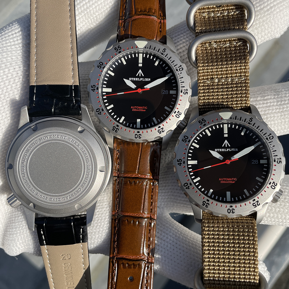 Weight: 101g (with checkered strap), 106g (with nylon strap), 89g (with leather strap)
