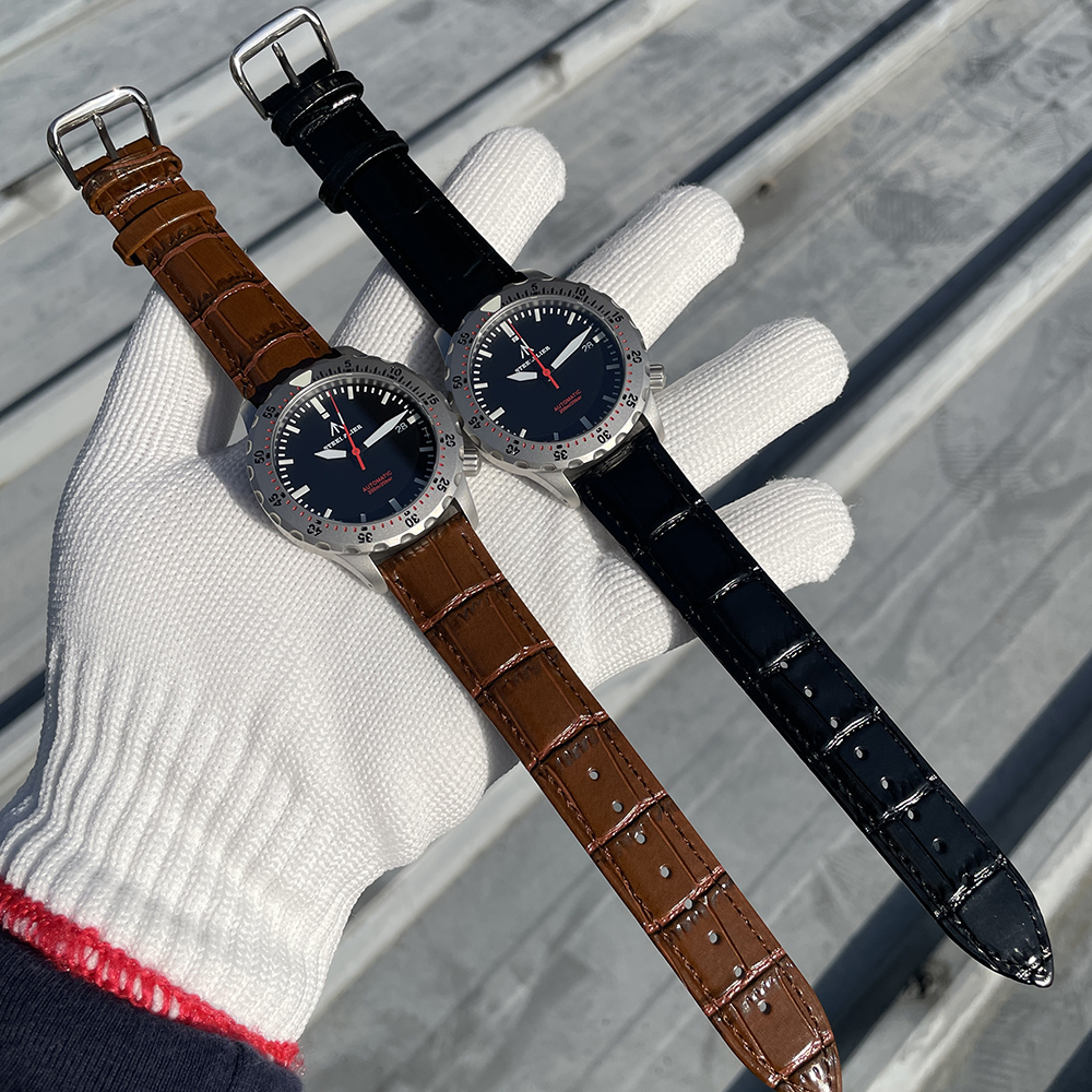 Movement features: 3 pins/calendar, frequency 21600 times per hour (3Hz), stop second device, two-way automatic winding, 24 stone, 41 hours of energy storage.